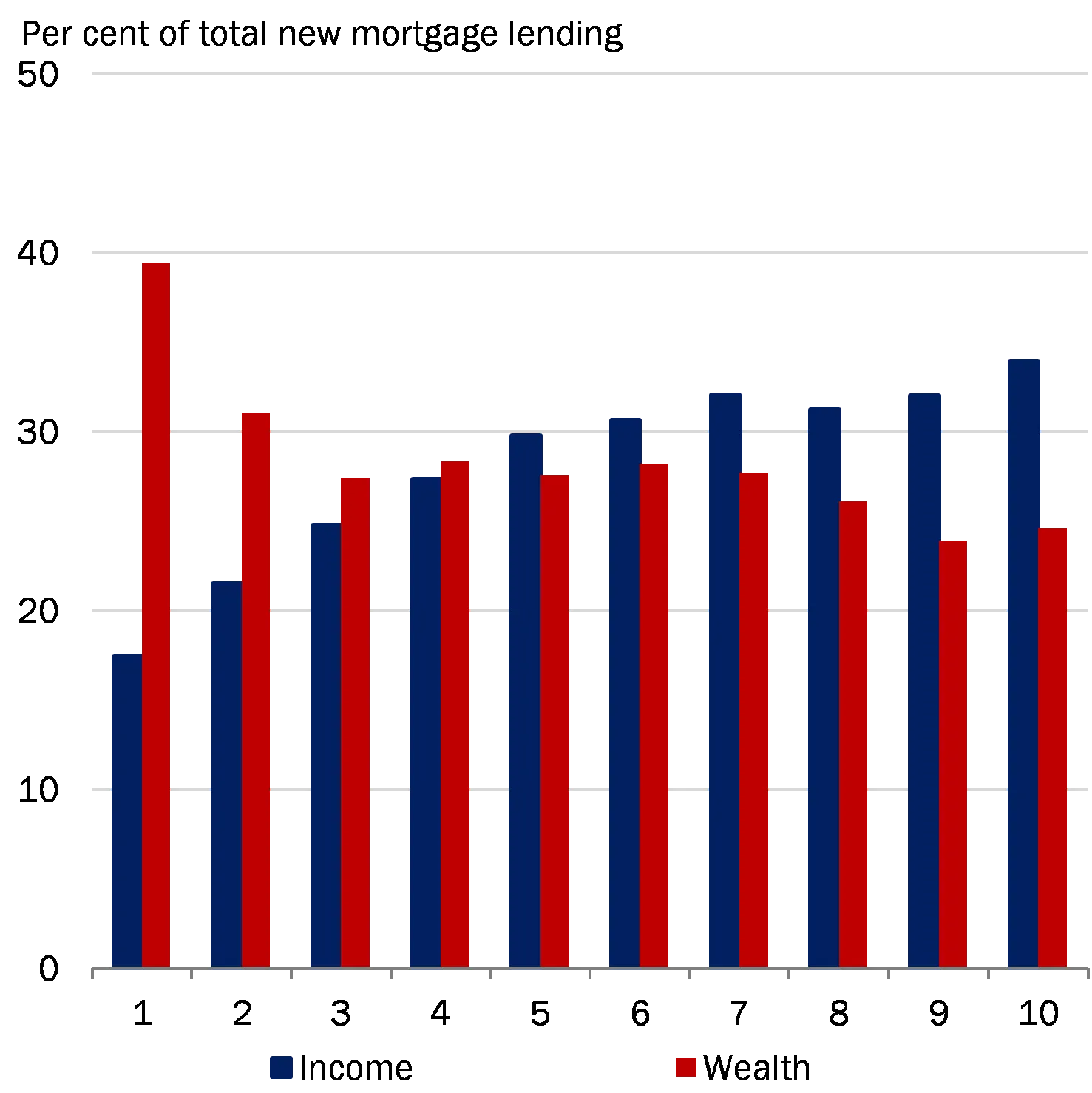 | Share of new mortgage interest-only loans in 2020 with an LTV ratio above 60 per cent by income, wealth and area | Chart 2 |