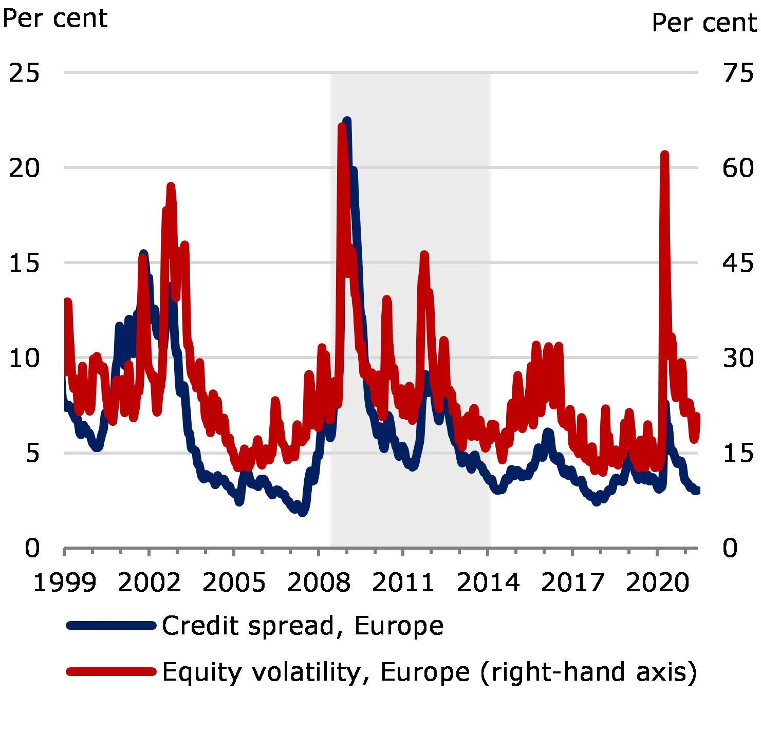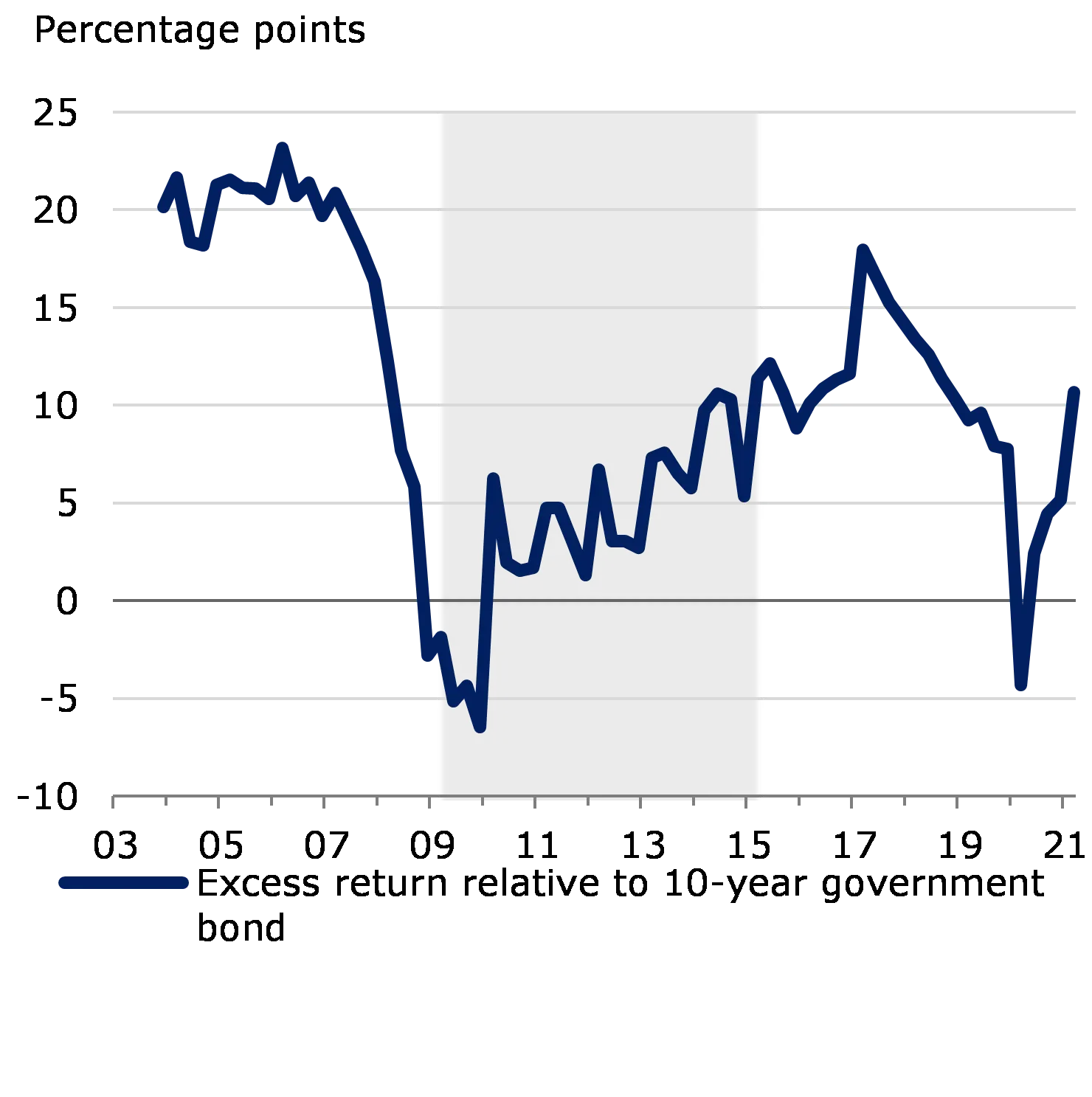 Low interest rates and very loose financial conditions, combined with the economic recovery, provide a basis for continued risk build-up. Risk perception is again low and at pre-covid-19 crisis levels. Equity prices and house prices have soared in the past year. Market participants expect interest rates to remain low for a lengthy period.