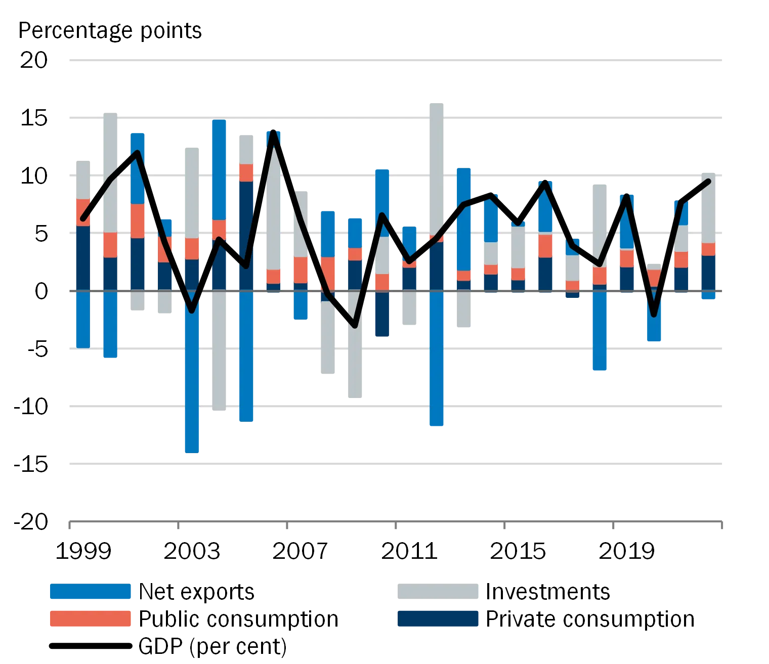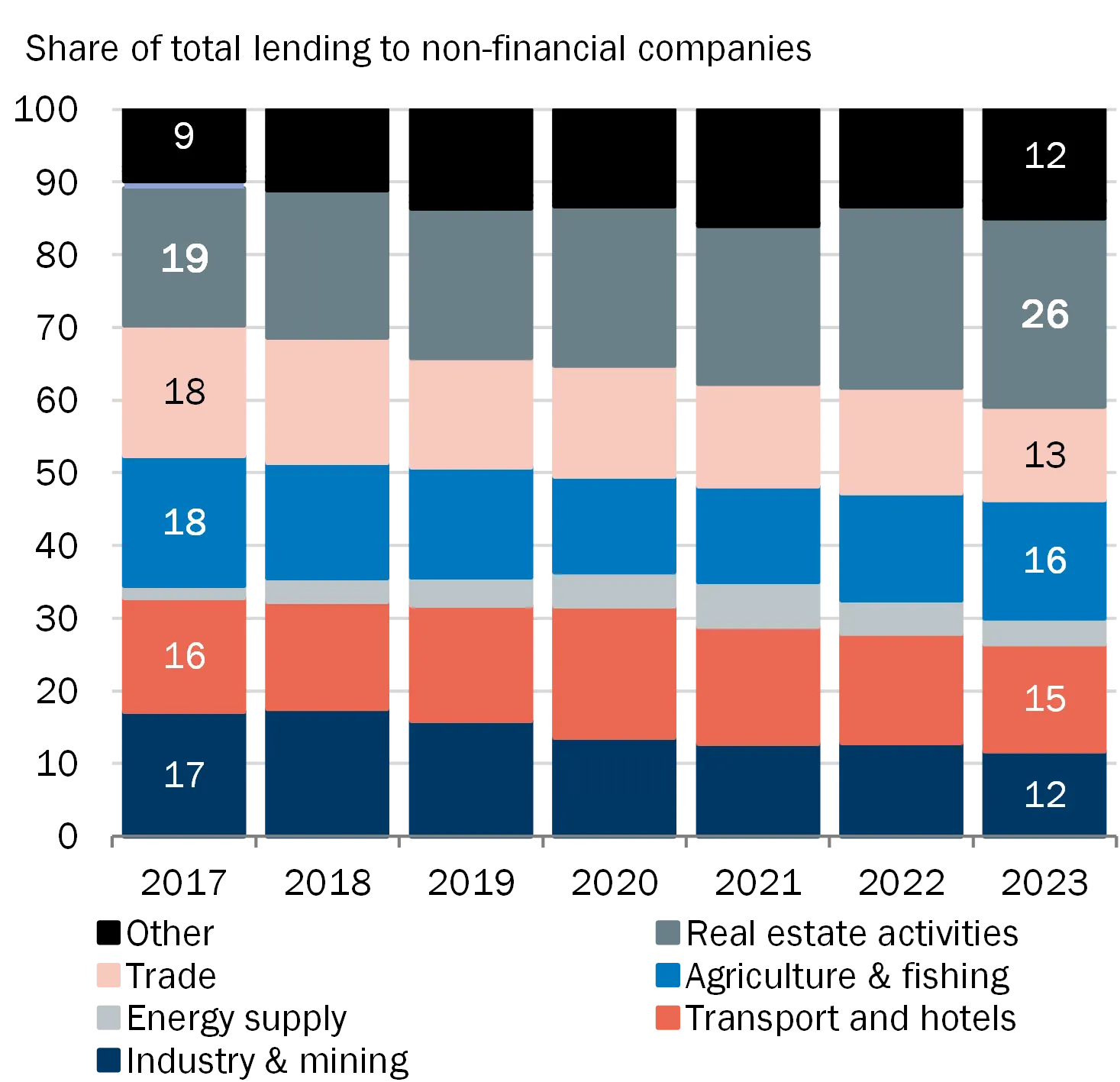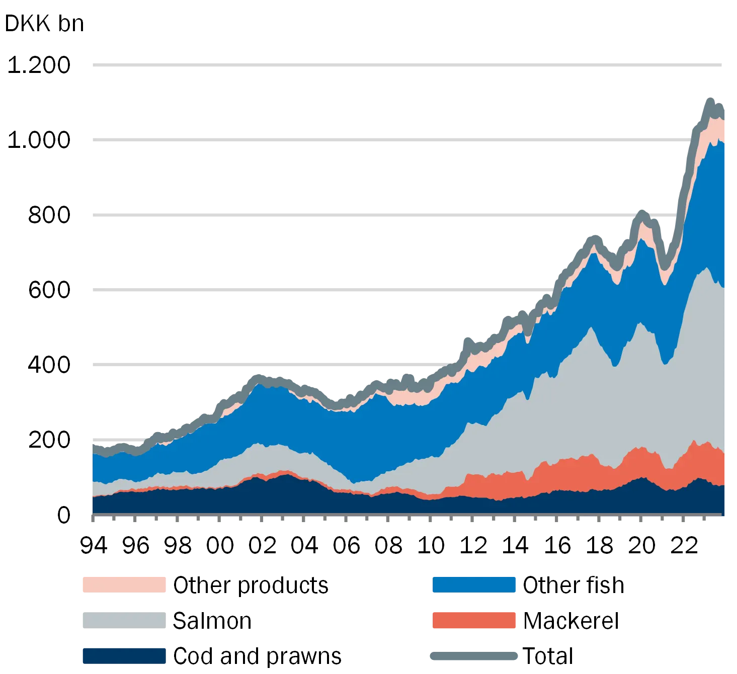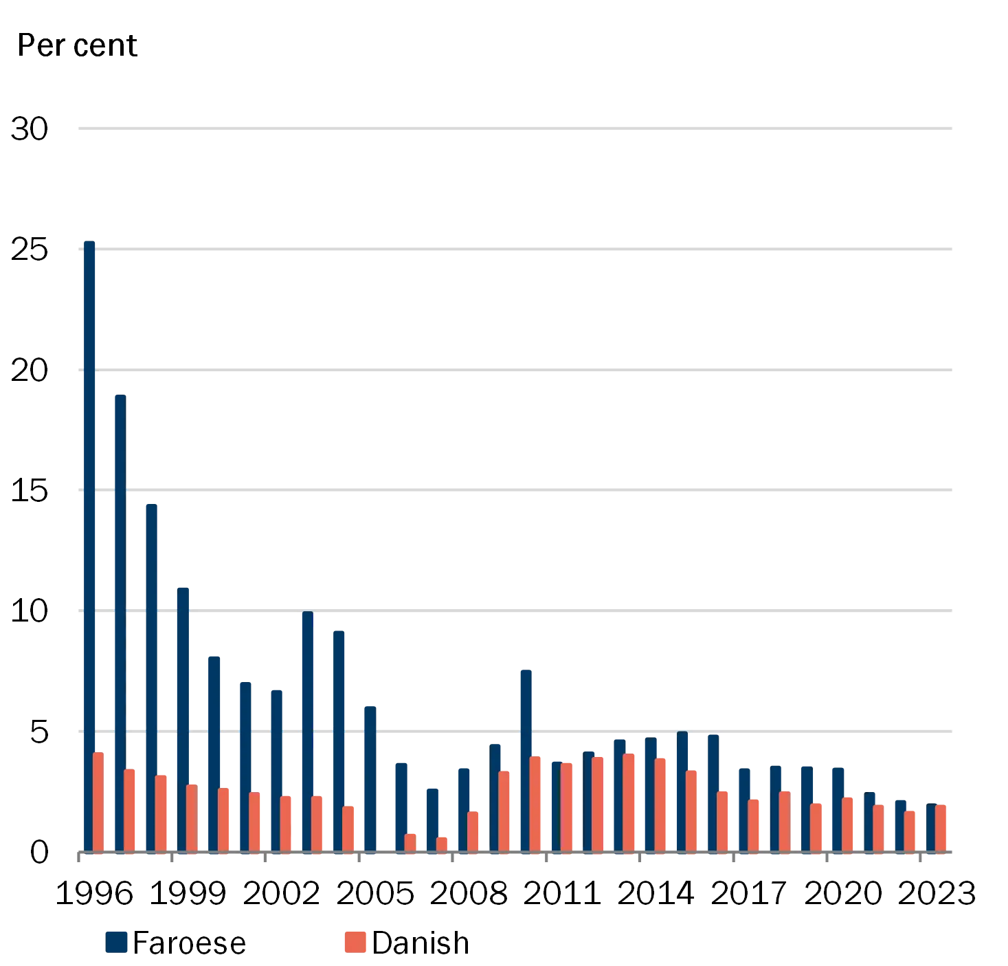 The Faroese economy is small and open with a concentrated business structure heavily dependent on fisheries and fish farming. This makes the economy vulnerable to negative economic shocks which, through direct and indirect effects, may lead to losses in the banking sector and amplify fluctuations in the real economy. Historically, there have been major fluctuations in the Faroese economy and with marked variation in the loan impairment charges in Faroese banks. The overall assessment is that the Faroese financial sector is vulnerable to the structural factors that characterise the Faroese economy, see also Appendix A.
