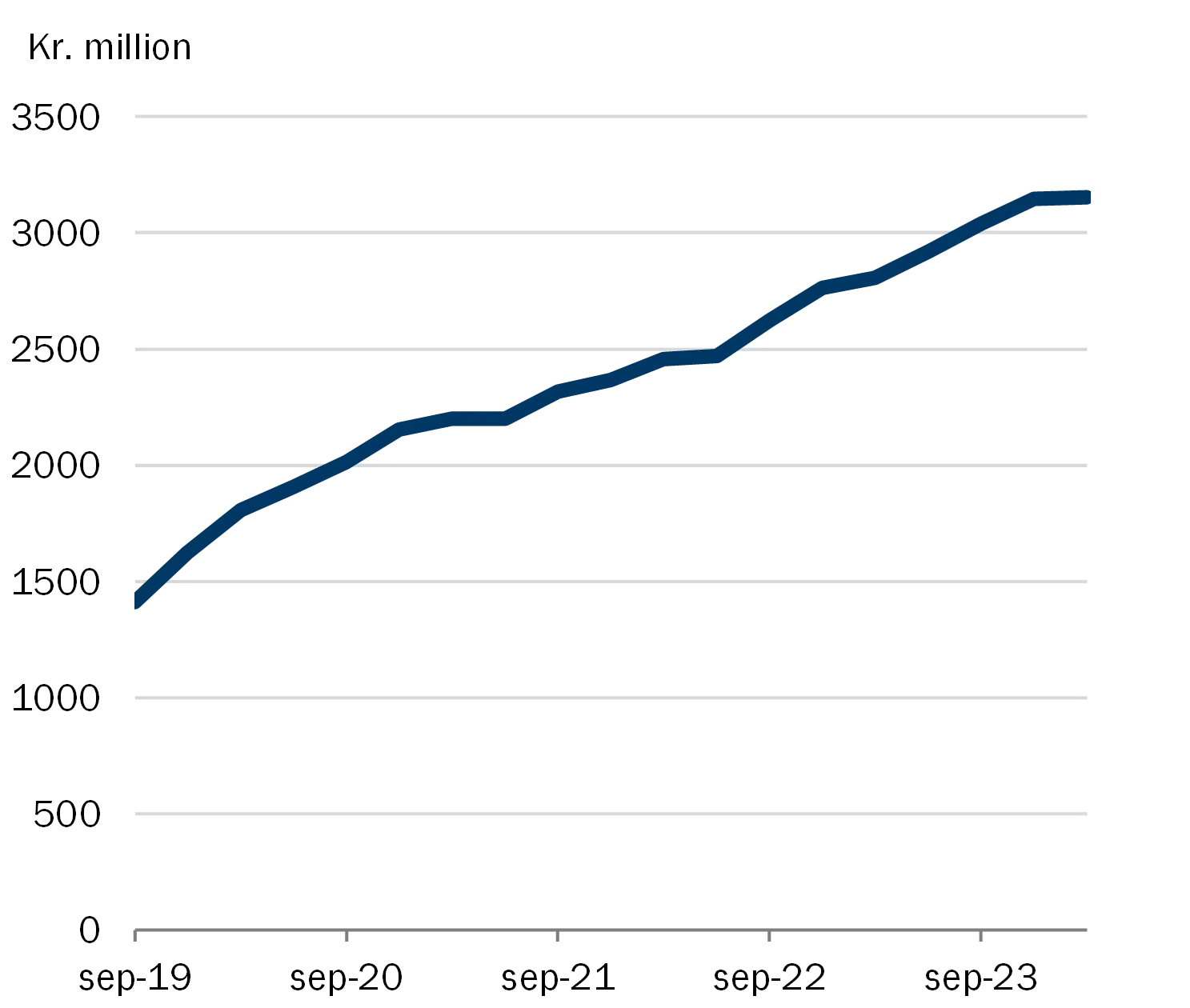 There has generally been strong growth in total lending in Greenland over a number of years, with annual growth rates of up to 16 per cent from 2019 to mid-2024 (see Appendix, chart 6, left). The growth in lending has thus exceeded the growth in nominal GDP.[4] Overall, this has led to an increase in the credit-to-GDP ratio, which is expected to reach 60 per cent by the end of 2023. The total credit in Greenland as a share of GDP remains relatively low in an international context, but has increased significantly from 2019 to 2023 (see Appendix, chart 4).
