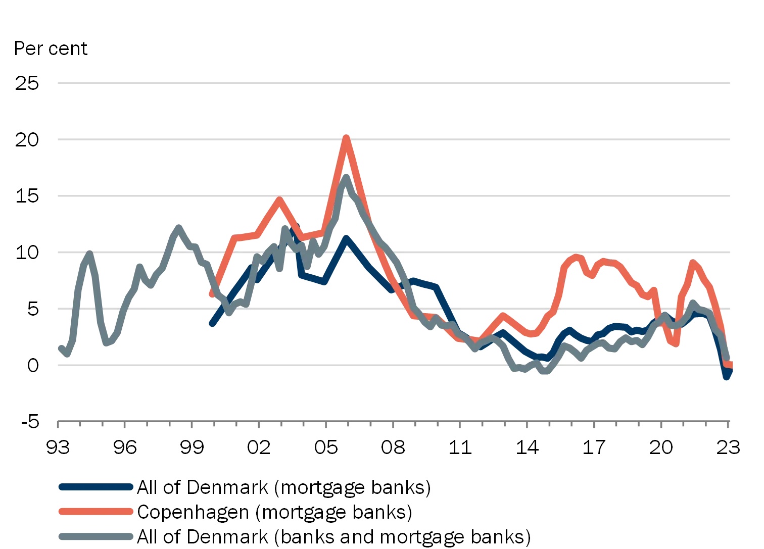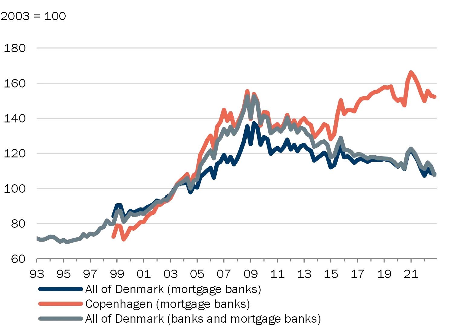 | Note: See chart 1. Source: Danmarks Nationalbank, Statistics Denmark, Association of Danish Mortgage Banks and own calculations. |